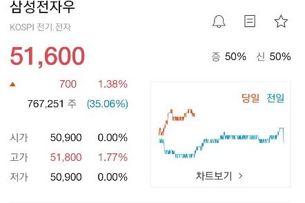 아직 삼성전자는 30주, 우선주는 10주 밖에 가지고 있지 않다.