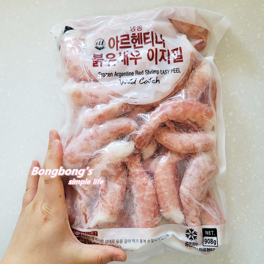 투명한 비닐 너머로 붉은빛깔이 보여서 익힌 새우인줄 알았는데, 고유의 붉은 빛을 띄고 있으며, 익히지 않는 생새우이다.코스트코 새우 제품 중에서 아르헨티나 붉은새우 이지필이 단연코 1등이 아닐까 싶은 생각이 든다.정확하게 세어보진 않았지만 1봉에 약 30마리 이상 들어 있는것 같다.