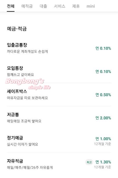 <카카오뱅크 자유적금 >