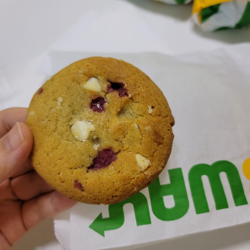 붉은빛이 조금 보이는 이건 써브웨이 라즈베리 치즈케익 쿠키이다.