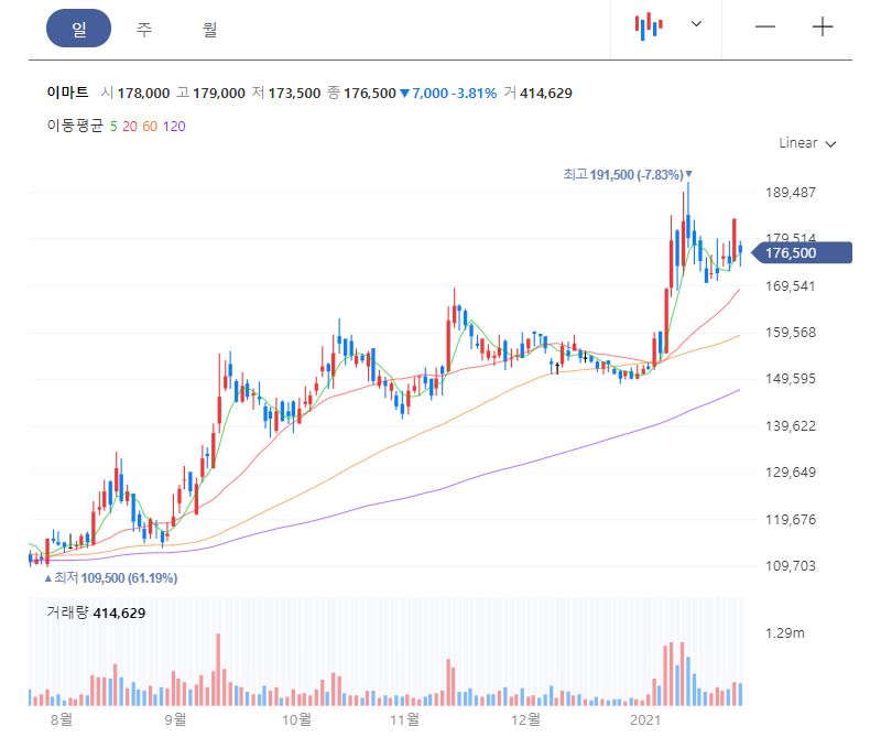 오늘은 내가 가지고 있는 이마트 주가에 대해 알아보고자 한다. 나는 주식을 전문적으로 공부하고 있는 사람이 아니고