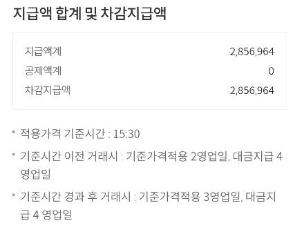 2,856,964원 입금되었으니 이익금은 64,882원..