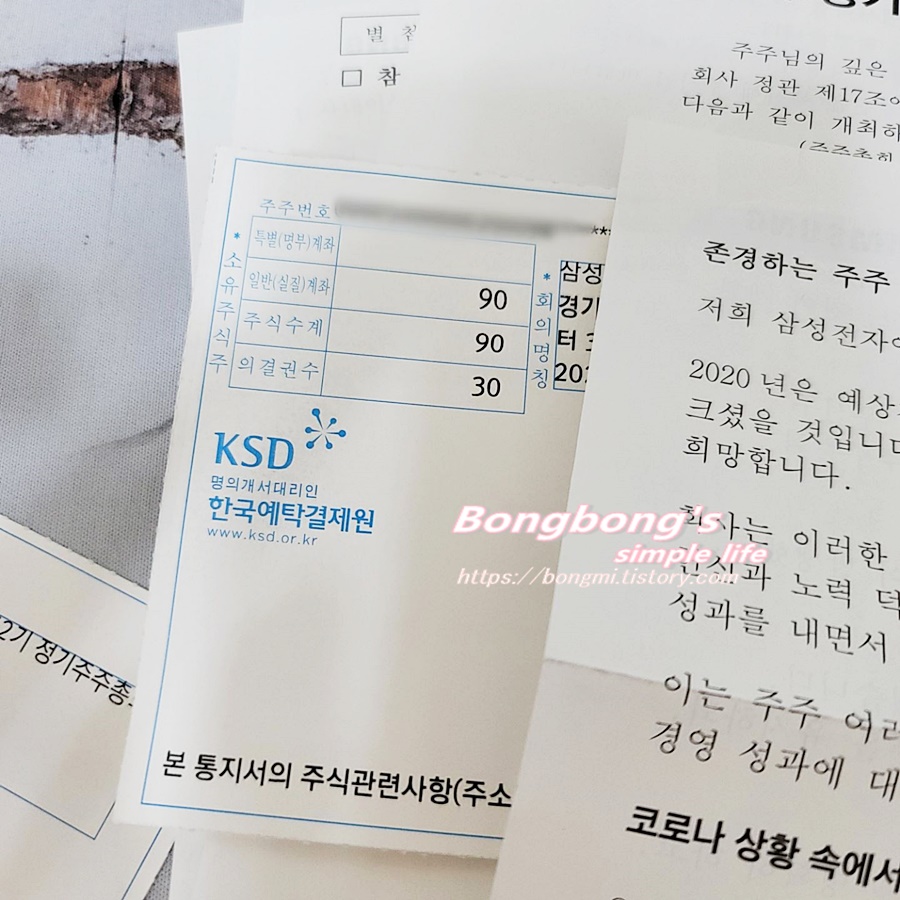 삼성전자 주식을 30주 가지고 있었다. 언제 매수 했는지 기억도 안나고, 얼마에 샀는지 기억도 안난다. 그냥 주변에서 다들 사니까, 나도 사놓기만 했다. 그리고 간간이 ,kds에서 우편물을 받았다,