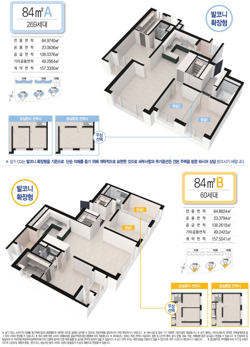 전용면적 84제곱미터 평수로만 구성되어 있고