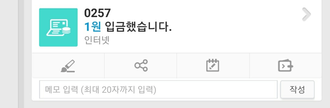 1원을 보내주면서 전송되는 숫자 메시지를 입력하면 된다.