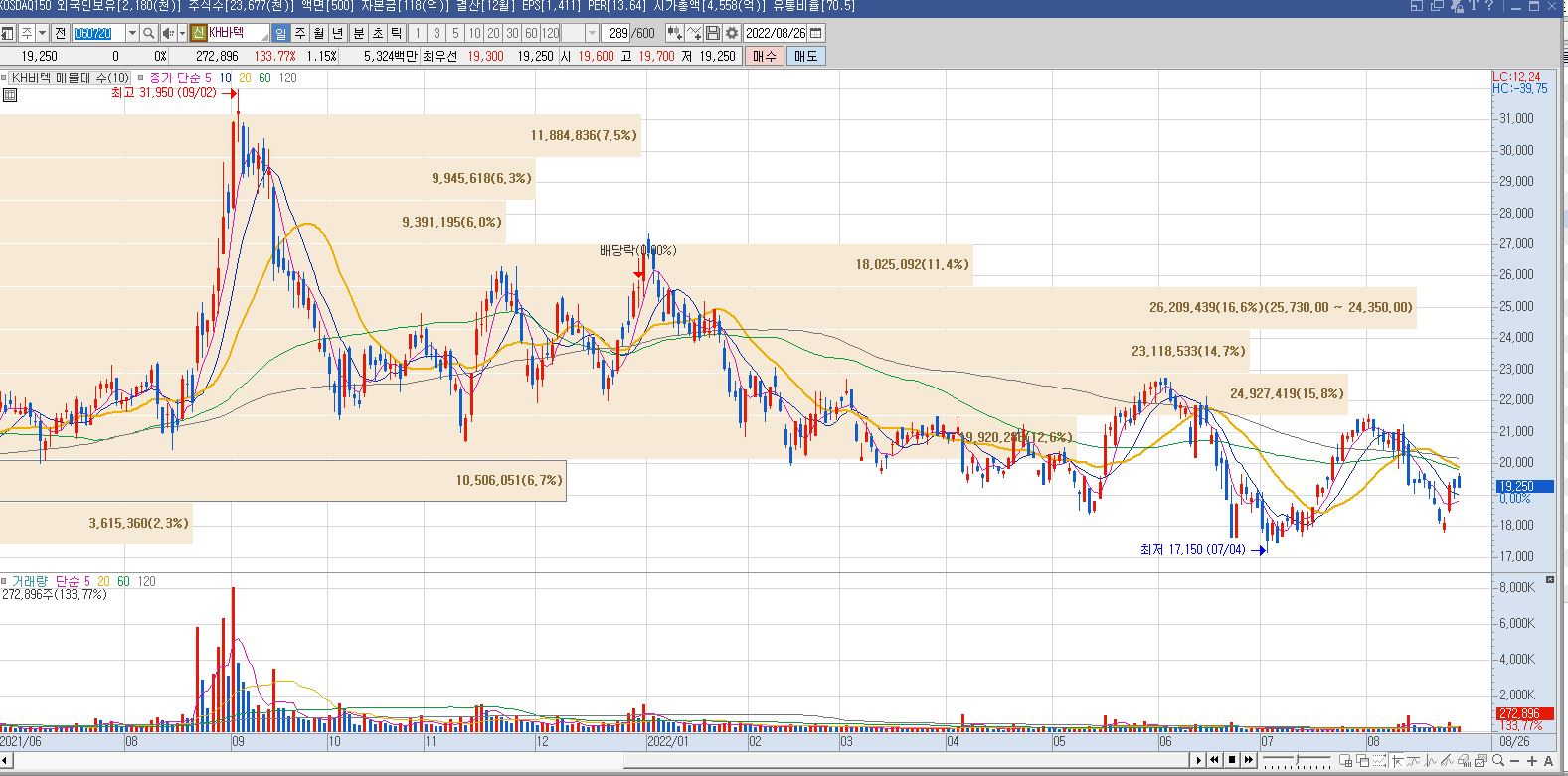 8월 26일 종가는 19,250원이다. 7월 17,150원 저점을 찍고 반등을 노리고 있는데 어째 쉽지 않은 분위기. 삼성 폴더블 폰 사전예약 성공으로 장대양봉을 보여주긴 했지만 아직 2만 원 돌파는 힘든 시기인 것 같다.