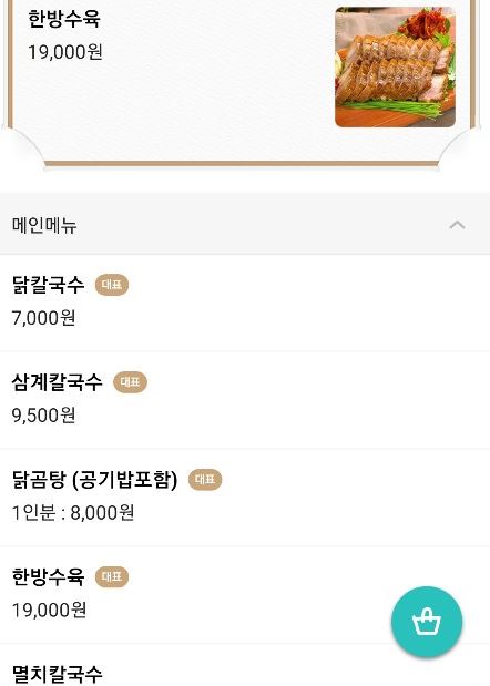 어플을 통해 본 현풍 닭칼국수 메뉴이다.